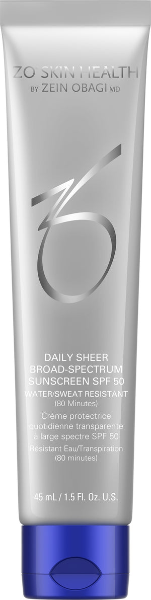 ZO® Daily Sheer Broad-Spectrum SPF 50 is a dermatologist-developed sunscreen that offers high-level protection in a lightweight, sheer formula. This advanced treatment: